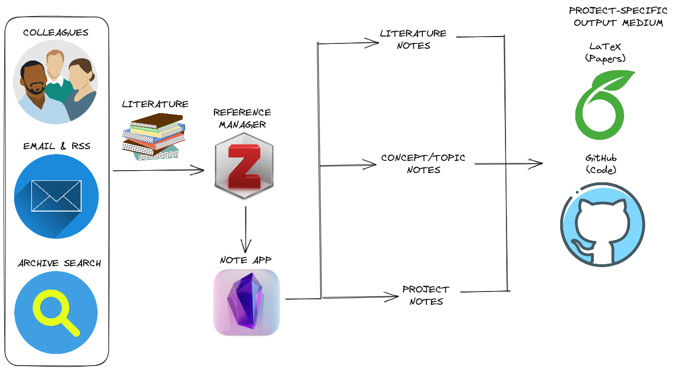 Since I need to manage hundreds of papers, I decided to use a reference manager, with my choice being goold 'ol free and open source Zotero. For note-taking, I'm sticking with Obsidian, since I like that it uses raw markdown files for future-proofing.