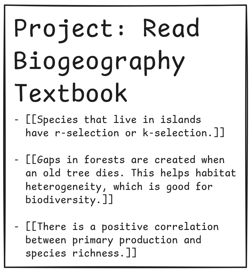 Below is a snippet of an actual personal project of mine: reading a textbook on biogeography, a field that has fascinated me as a hobbyist naturalist for a long time.